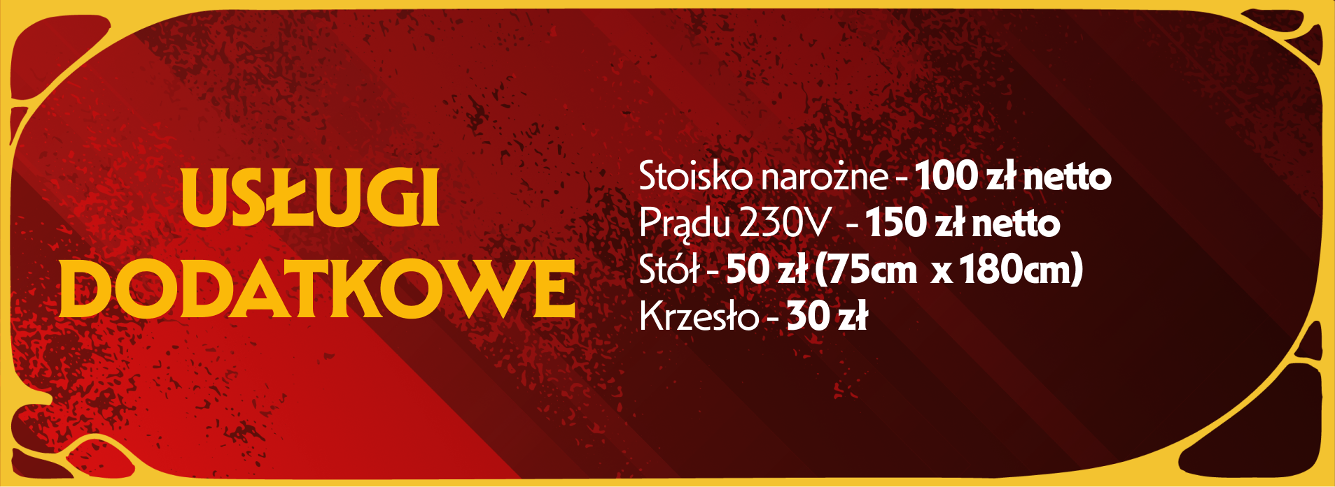 Miejsce dla wystawców, którzy chcą oferować uczestnikom Fantasy & Magic Con jedzenie i napoje. Zapraszamy food trucki i inne stoiska gastronomiczne. Wycena stoisk gastronomicznych odbywa się indywidualnie drogą mailową. Zgłoszenie należy przesłać na adres wystawcy@fantasymagiccon.pl